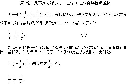 五年級奧數下冊:第七講 從不定方程1/n = 1/x + 1/y的整數解談起