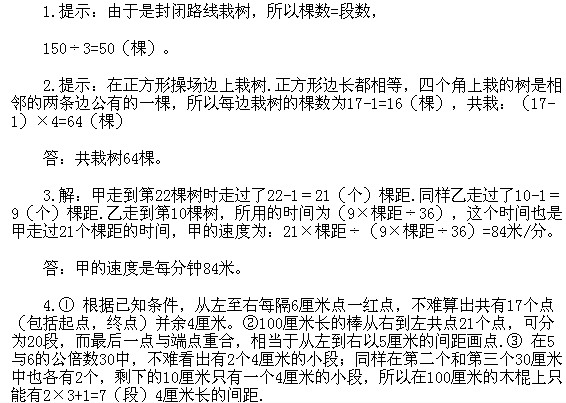 三年級奧數(shù)上冊:第四講 植樹與方陣問題 習題解答